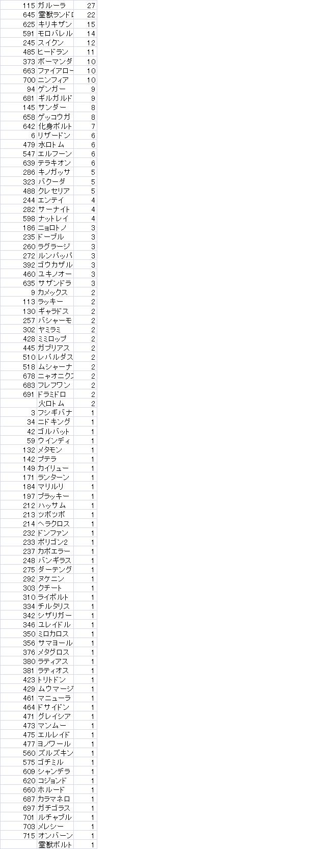 ただし、ミュウツー、ミュウ、ルギア、ホウオウ、セレビィ、カイオーガ、グラードン、レックウザ、ジラーチ、デオキシス、ディアルガ、パルキア、ギラティナ、フィオネ、マナフィ、ダークライ、シェイミ、アルセウス、ビクティニ、レシラム、ゼクロム、キュレム、ケルディオ、メロエッタ、ゲノセクト、ゼルネアス、イベルタル、ジガルデ、ディアンシーは使用できません。